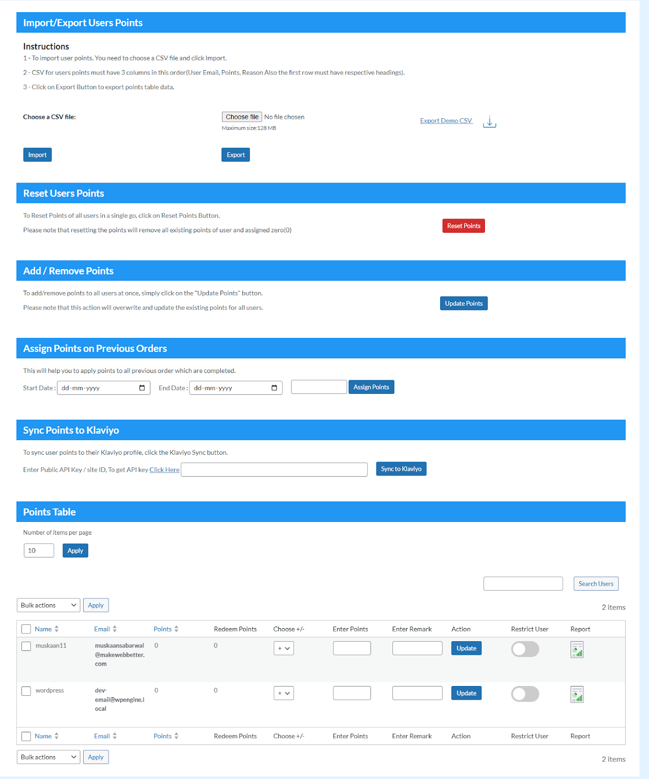 To Backend: Go to the plugin setting > Other setting tab > On Point Sharing section > Enable Point Sharing.
