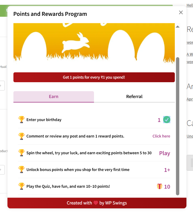 - Gamification feature that takes your WooCommerce loyalty program to the next level, and elevates your websites by enabling customers to spin the wheel and unlock rewards, enhancing interaction and excitement.