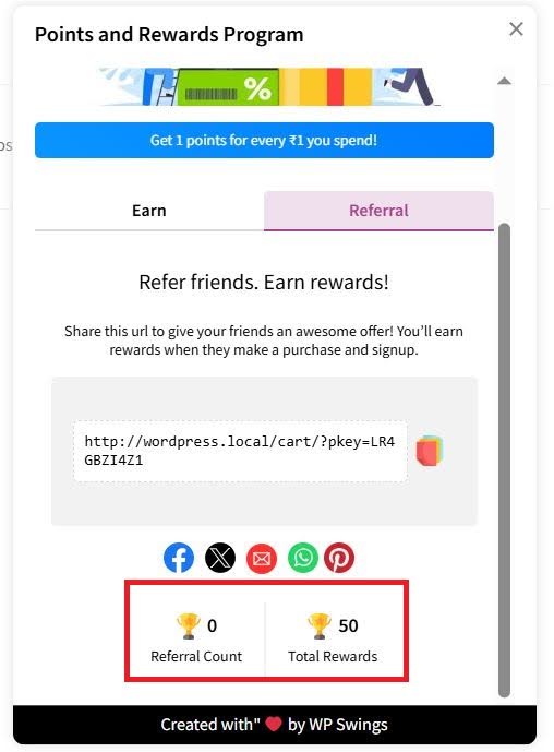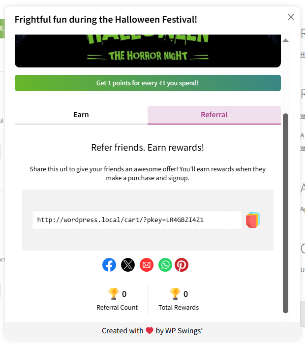 After successfully enabling the setting, your customers can share referral links to other users with social media platforms.